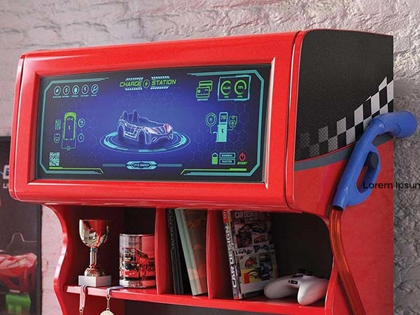 Η παιδική συρταριέρα, που θυμίζει Vintage αντλία βενζίνης της σειράς CHAMPION RACER.