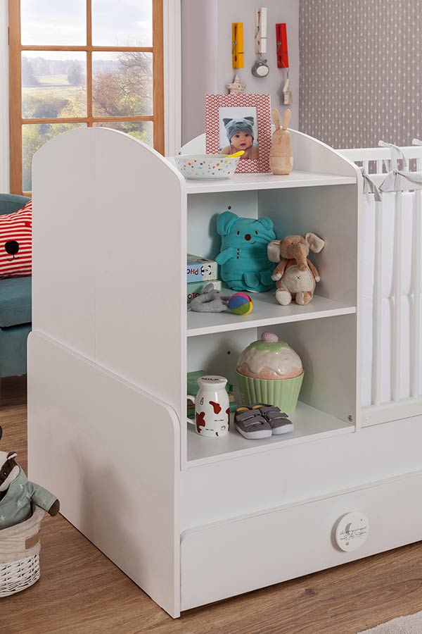 Η βρεφική κούνια της σειράς SL COTTON με το ιδιαίτερο και πρωτότυπο λευκό design της, διαθέτει μεγάλους και αποθηκευτικούς χώρους (τρία συρτάρια), και ένα μεγάλο συρτάρι στο κάτω μέρος του κρεβατιού, για να έχετε πάντα κοντά σας όλα τα απαραίτητα ρούχα του μωρού σας.