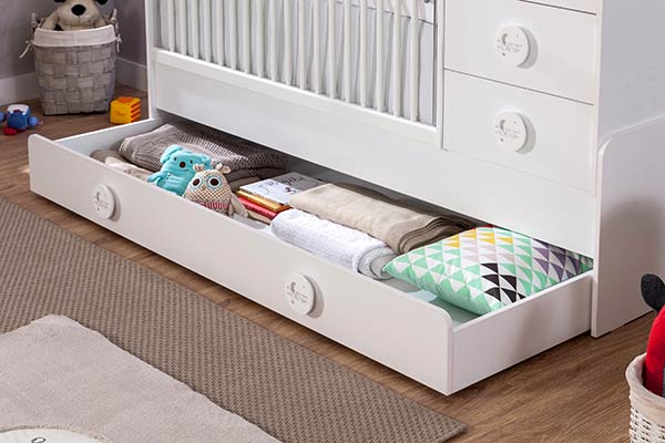 το συρτάρι κάτω από την κούνια, σας προσφέρει έναν έξτρα αποθηκευτικό χώρο, για να έχετε πάντα κοντά σας ότι θα χρειαστείτε για το μωρό σας