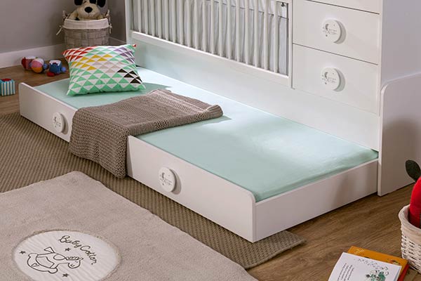 με την τοποθέτηση ενός στρώματος, η κούνια μεταμορφώνεται σε ένα δεύτερο κρεβάτι και μπορεί να φιλοξενήσει ένα παιδί ακόμα.