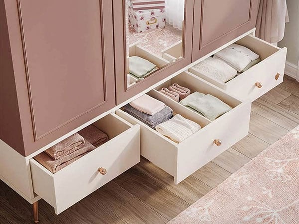 η ντουλάπα είναι σχεδιασμένη πάνω στην ανάγκες των κοριτσιών, διαθέτει τα ανάλογα ράφια και συρτάρια, όσο και κρεμάστρες, για να ταξινομήσετε σωστά όλα σας τα ρούχα.