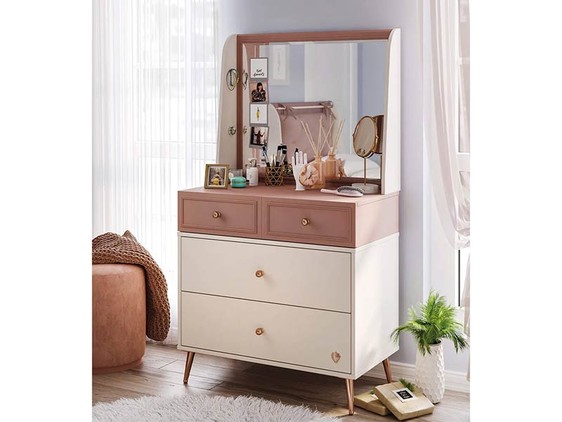 Η συρταριέρα, διαθέτει πολλούς αποθηκευτικούς χώρους, και ένα συρτάρι έτοιμο σαν μπιζουτιέρα, για να έχετε πάντα τακτοποιημένα και ταξινομημένα σωστά όλα σας τα προσωπικά σας είδη.