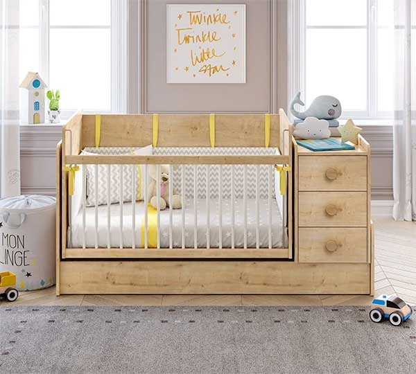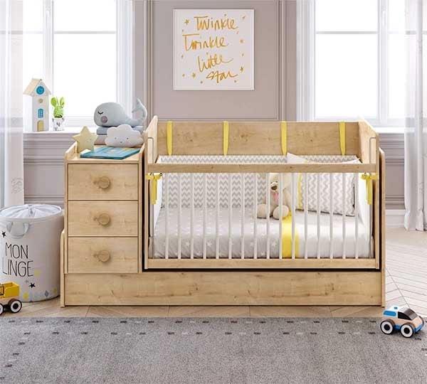 η βρεφική σας κούνια, έχει την δυνατότητα να μεταμορφώσει το βρεφικό σας δωμάτιο σε παιδικό, αναπτύξτε την, και απολαύστε το πρώτο του κρεβάτι, το γραφείο, μια μικρή βιβλιοθήκη και ένα κομοδίνο, μια φανταστική πρόταση από μια μόνο κούνια.