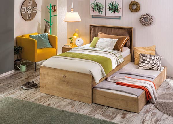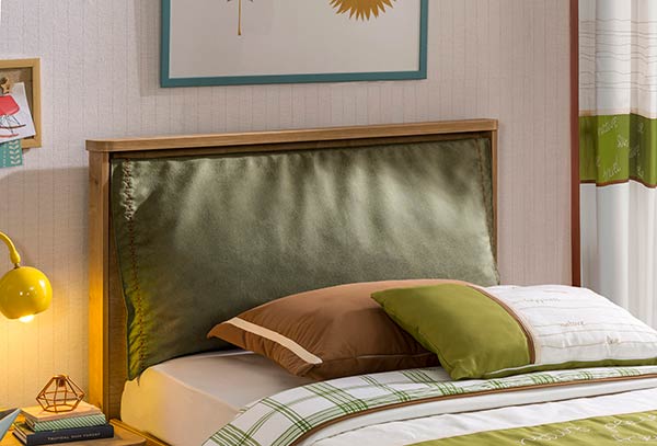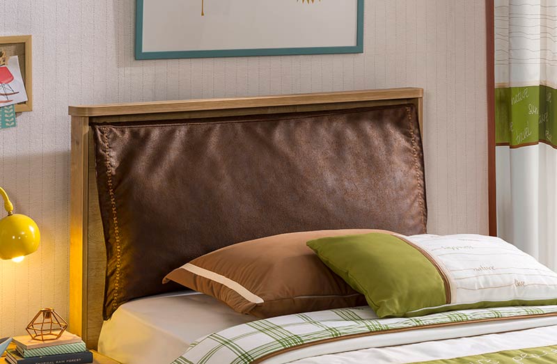 Παιδικό κρεβάτι της σειράς MOCHA σε φυσικές αποχρώσεις του ξύλου. Λιτό και απλό design με ιδιαίτερο κεφαλάρι ντυμένο με ύφασμα και ξύλινη υφή, ότι ακριβώς θέλουν οι έφηβοι.