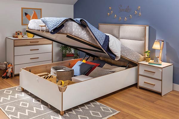 Ένα κρεβάτι με αποθηκευτικό χώρο είναι η καλύτερη σας επιλογή για ένα μικρό δωμάτιο, θα σας βοηθήσει να αποθηκεύετε όλα τα καθημερινά σας λευκά σας είδη για το στρώσιμο του κρεβατιού.