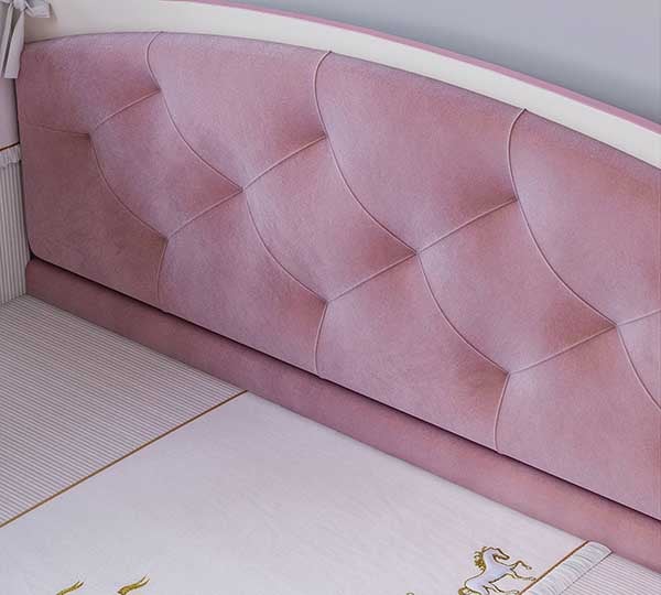 το εσωτερικό της πλάτης στην βρεφική σας κούνιας, είναι ντυμένο με ένα μοναδικό καπιτονέ ύφασμα που παρέχει απόλυτη ασφάλεια στο μωρό και ταυτόχρονα του χαρίζει τον ρομαντισμό του παραμυθιού