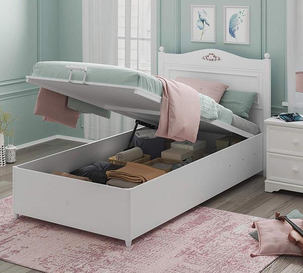 Ένα κρεβάτι με αποθηκευτικό χώρο από την σειρά Rustic White, μια νέα πρόταση για το δωμάτιο των κοριτσιών, με μεγάλο αποθηκευτικό χώρο που θα σας λύσει το χέρια για το καθημερινό στρώσιμο του κρεβατιού.