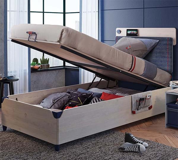 Παιδικό κρεβάτι μπαούλο της σειράς TRIO, με μεγάλο αποθηκευτικό χώρο κάτω από το κρεβάτι.